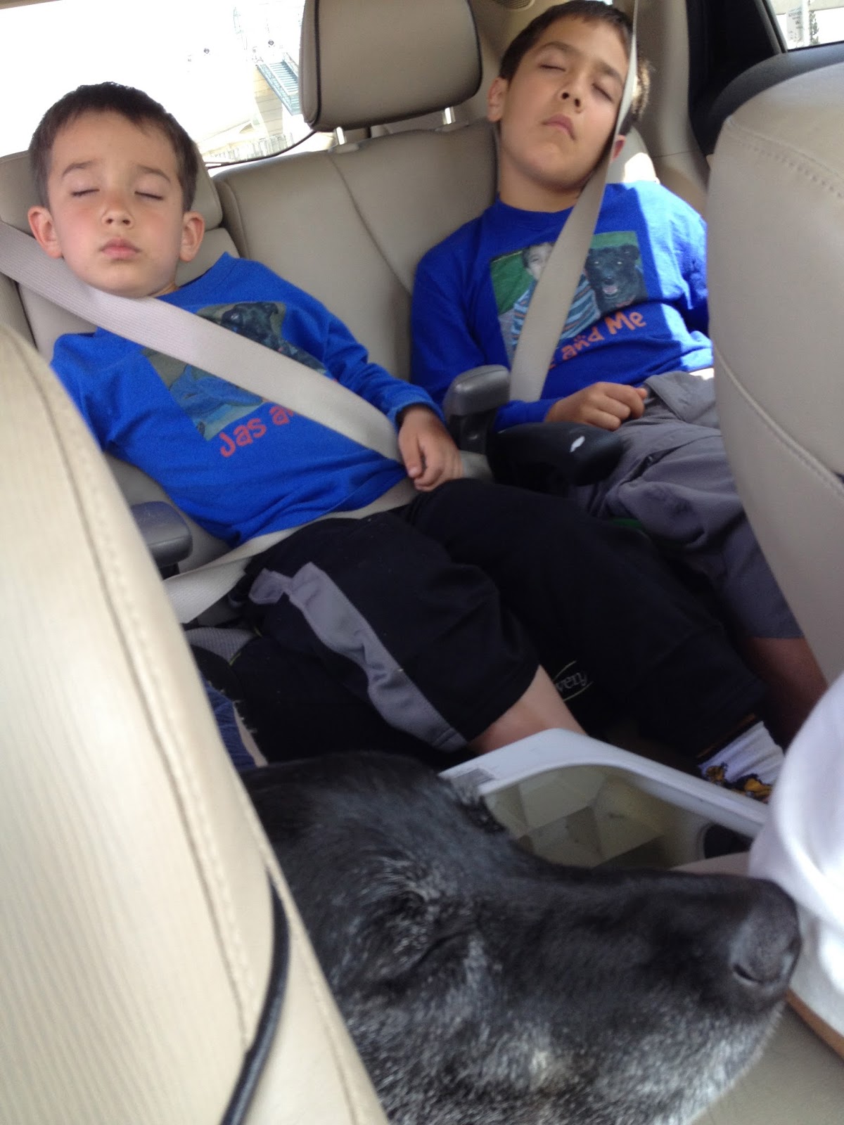 Late that morning, we loaded up the car and made a bed in the car for Jasmine. I had to lift her into the car, as she could no longer jump up. Then, Jas and Mickie drove us to LAX. Jas seemed quite happy with her nose sticking out the open window as we drove along. She alternated between having her head out the window and laying her head on my arm on the middle console. Both boys fell asleep on the drive.